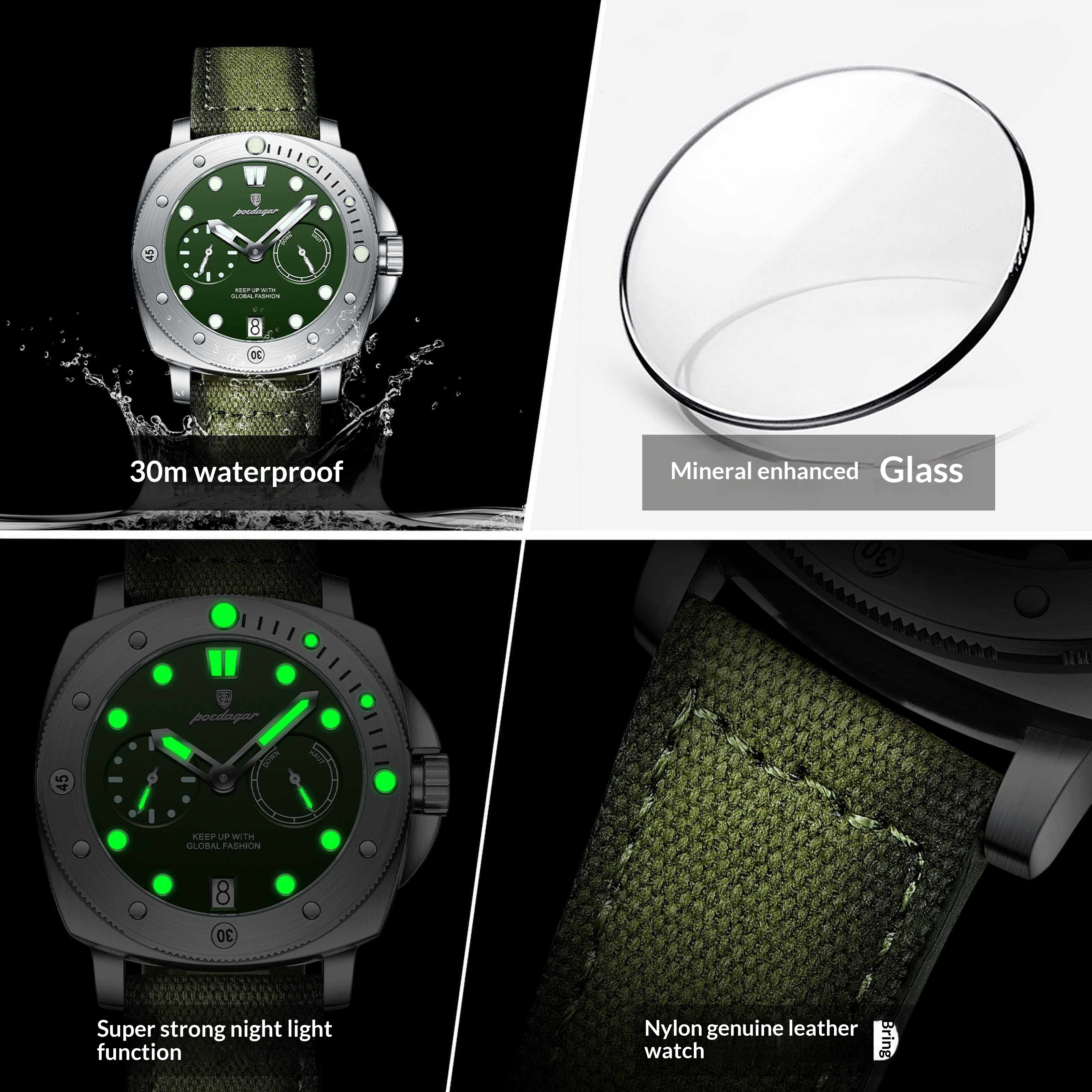 Crafted with high-quality materials, this watch features a waterproof design, making it a reliable companion for your active lifestyle. The luminous hands ensure you can keep track of every second, even in low-light environments, while the multifunctional sub-dials provide added utility for your busy schedule.